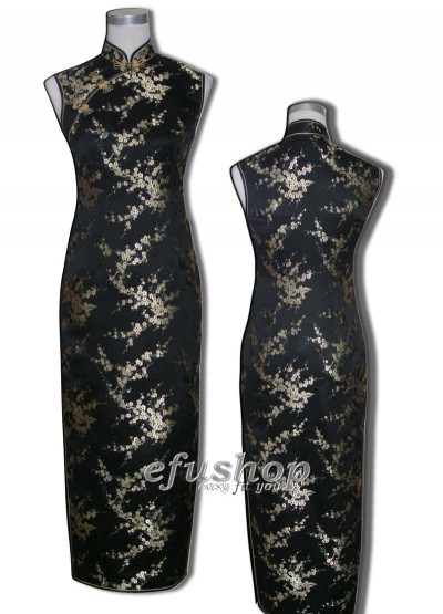 Black with golden plum sleeveless cheongsam Item Code: 1845