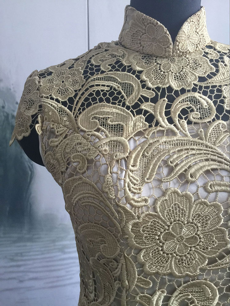 Golden lace qipao name: Golden wedding dress cheongsam,